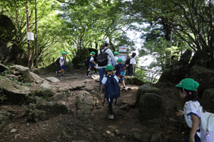 | 約25分ほどですが、ほとんどの子が歩いた事がないようなゴロゴロ道です。木陰が多い道で強い日差 |